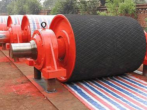 傳動滾筒是皮帶輸送機傳遞動力的主要部件。根據承載力的大小可分輕型、中型、重型三種,滾筒表面有裸露鋼面,潮濕、單向或功率大的可采用人字型花紋膠面,菱形花膠面適用于雙向運行的輸送機。