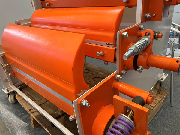 改向滾筒主要用于改變輸送帶的運行方向或增加輸送帶與傳動滾筒間的圍包角,改向滾筒的覆面,有裸鋼面和平滑膠面兩種。