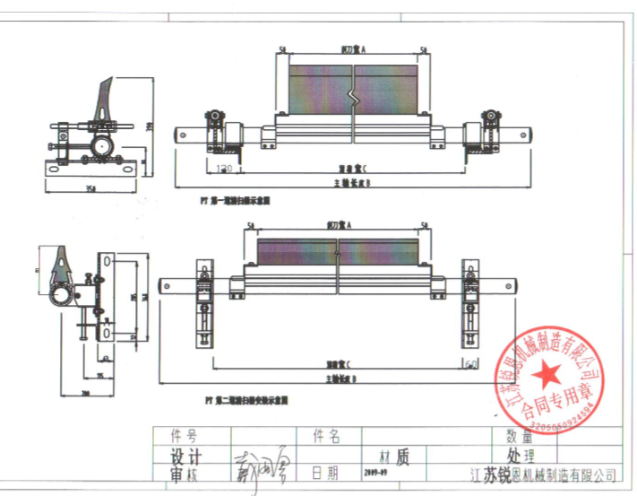 (2)清掃器兩端設置有彈性調節裝置,方便調節刮刀與皮帶的接觸壓力。